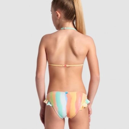 La tua bambina potrà che adorare il nostro bikini a triangolo arena Water Print Multistampa con i suoi dettagli a volant. È un due pezzi elegante e vivace, perfetto per i tuffi in mare, per costruire castelli di sabbia e per giocare a beach volley.