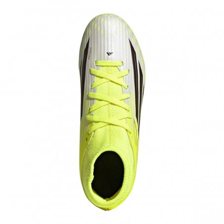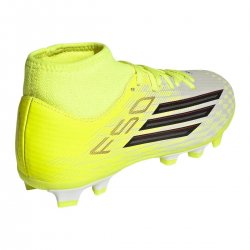 Scarpe da calcio adidas F50 Club Mid FG/MG da bambino, progettate per la velocità e il controllo in partita. Offrono un collarino mid-cut in Fiberskin e una tomaia leggera studiata per supportare il movimento rapido.