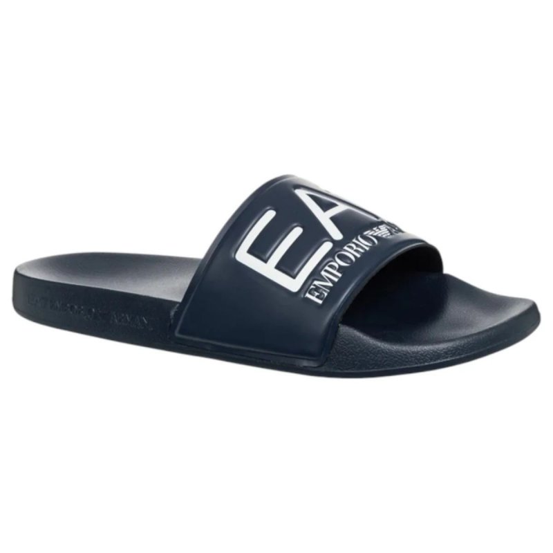 Sliders definite dalla maxi fascia decorata dal maxi-logo EA7. Un modello versatile, perfetto per la piscina e la spiaggia.
