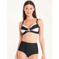 Per un look minimal dal leggero gusto retrò è prefetto questo bikini David bicolore con coppe preformate e slip nero a vita alta e sgambatura media. La spilla gioiello è removibile, quindi è possibile posizionarla a proprio gusto.