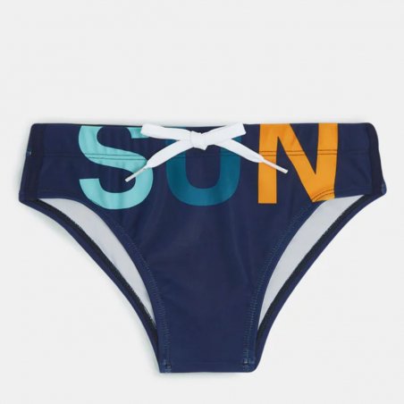 Slip mare da bambino con stampa SUNDEK multicolor sia sul fronte che sul retro. Comodo grazie all’elastico in vita e al laccio regolabile, è il costume che il tuo bimbo potrà indossare con facilità per giocare e fare il bagno.