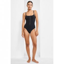Costume da bagno dal taglio classico essenziale con delicati dettagli metallici. Sofisticata scollatura classica leggermente squadrata e coppe.