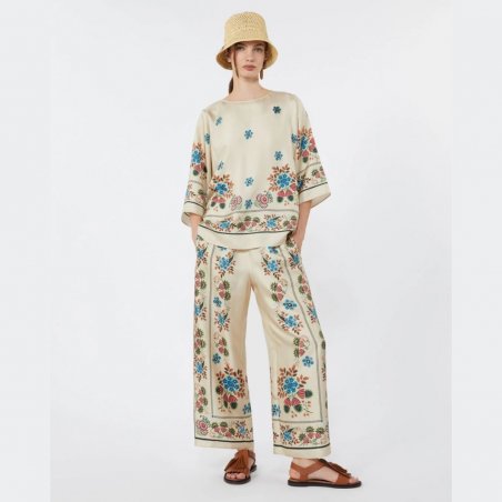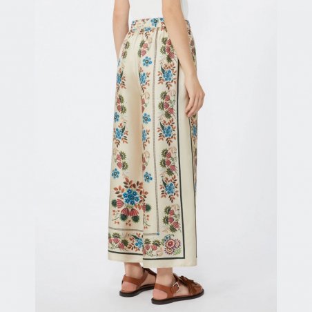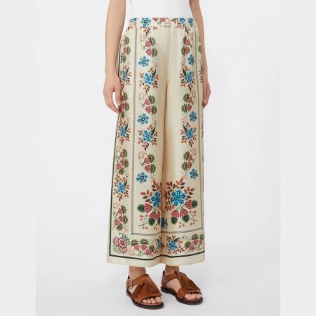 Pantalone Weekend Max Mara in twill di pura seta, dalla linea fluida con gamba larga e taglio cropped alla caviglia.
