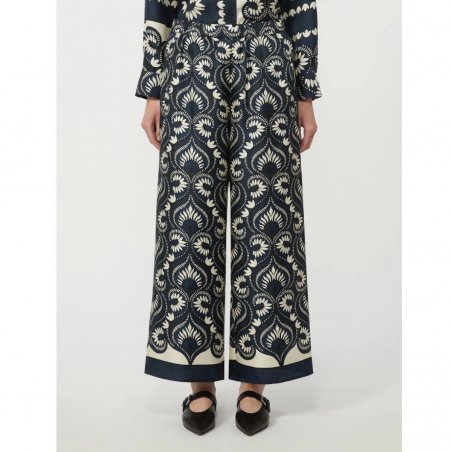 Pantalone Weekend Max Mara lungo alla caviglia dalla silhouette fluida, con motivo di collezione stampato all over.