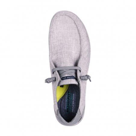 Il grande comfort si coniuga alla perfezione con lo stile casual della SKECHERS Relaxed Fit: Melson - Nela. Questo modello casual da spiaggia presenta una tomaia in tela con lacci decò annodati, soletta in carbone Skechers Air Cooled Memory Foam, che neutralizza gli odori, e ammortizzazione Skechers Goga Mat per un maggiore supporto.