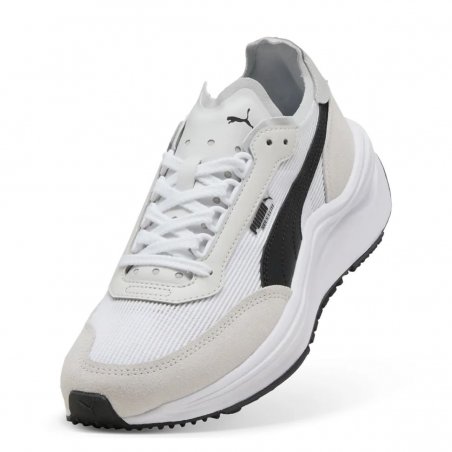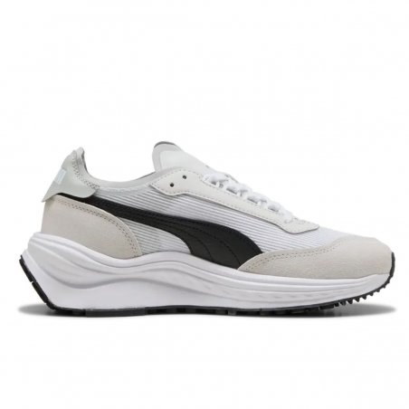 La scarpa Puma Rider Elite combina stile retrò e comfort. Tomaia in tessuto con dettagli sintetici, fodera morbida, punta arrotondata e chiusura con lacci per una calzata versatile e durevole.