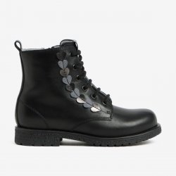 Anfibi NeroGiardini da bambina realizzati in Italia con materiali di alta qualità. Dotati di chiusura pratica, fondo ultraleggero e morbido sottopiede ammortizzante che assicura comfort e benessere del piede per tutto il giorno.