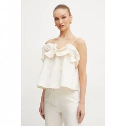 Lascia scoperte le spalle con questo top Emme Marella in popeline stretch dalle ampie rouche sullo scollo.