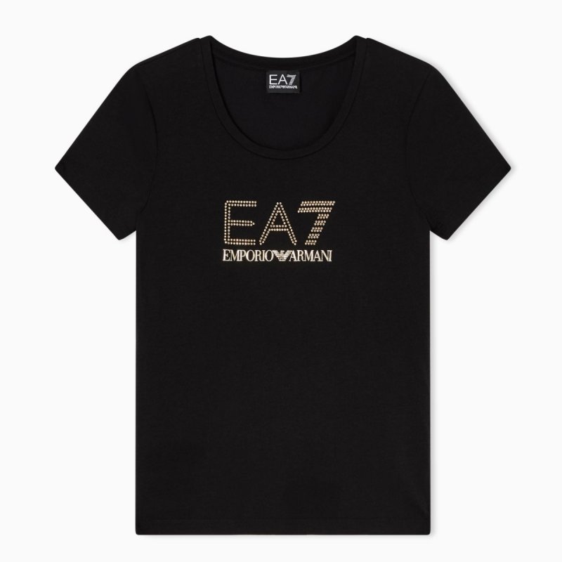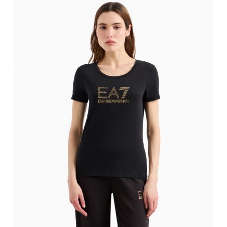 - Logo EA7 a contrasto con micro borchie dorate sul petto