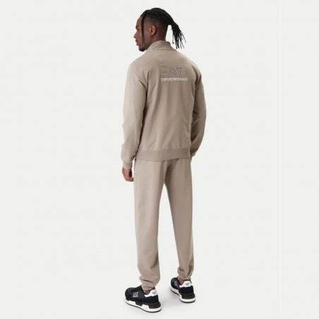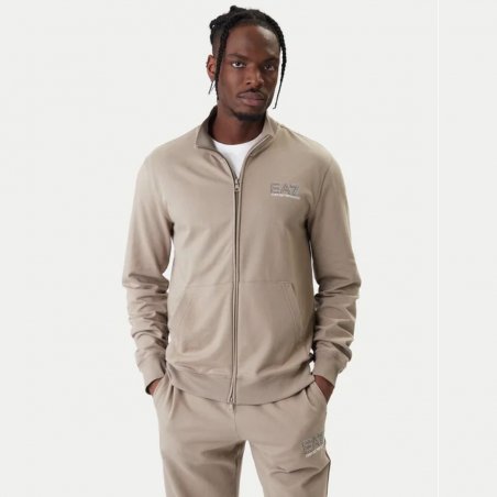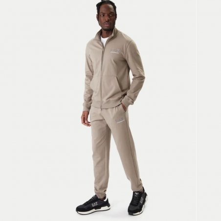 Tuta EA7 Visibility Puro Cotone, Il modello presenta felpa con zip e pantaloni jogger coordinati che offrono una vestibilità comoda. Il logo EA7 personalizza entrambi i capi. Ideale per chi cerca comfort e performance senza rinunciare al look.